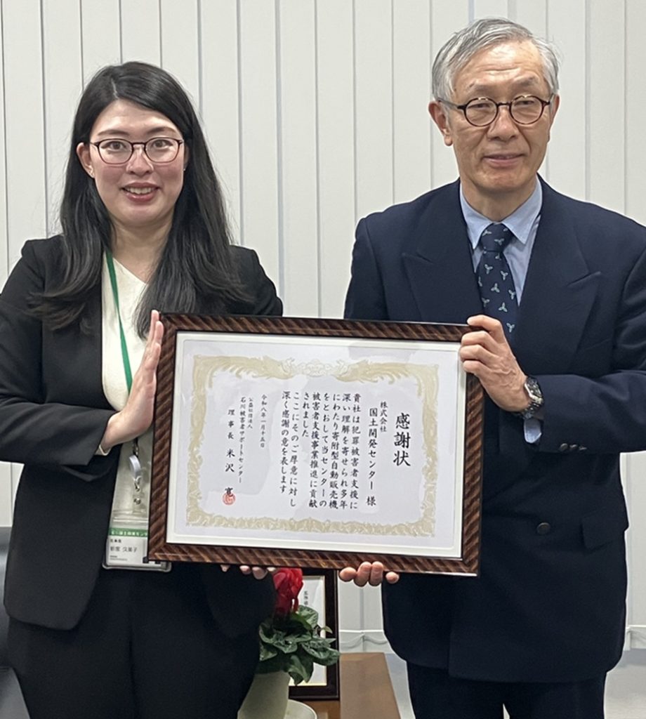 公益社団法人 石川被害者サポートセンターより、長年の犯罪被害者等支援により感謝状をいただきました。